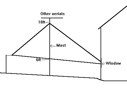 The loop was installed at G4BGZ who has very little antenna space. He has worked all over the UK on 160 SSB and into North America on 80 SSB. I have also used it as a portable antenna when on holiday in places with little space. Last May I used it in Cornwall with the apex supported by a 20 foot portable mast taped to a line prop! (see photo ). The ice-cream carton was taped to the other line prop at the far corner of the loop. I worked into Fort William area on 160 and all over the place on 80 using 100 Watts so it is a reproduceable design.