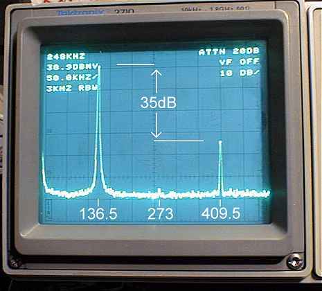 Here we can see the fundamental and the second and third harmonics. The third harmonic is well suppressed at 35dB.